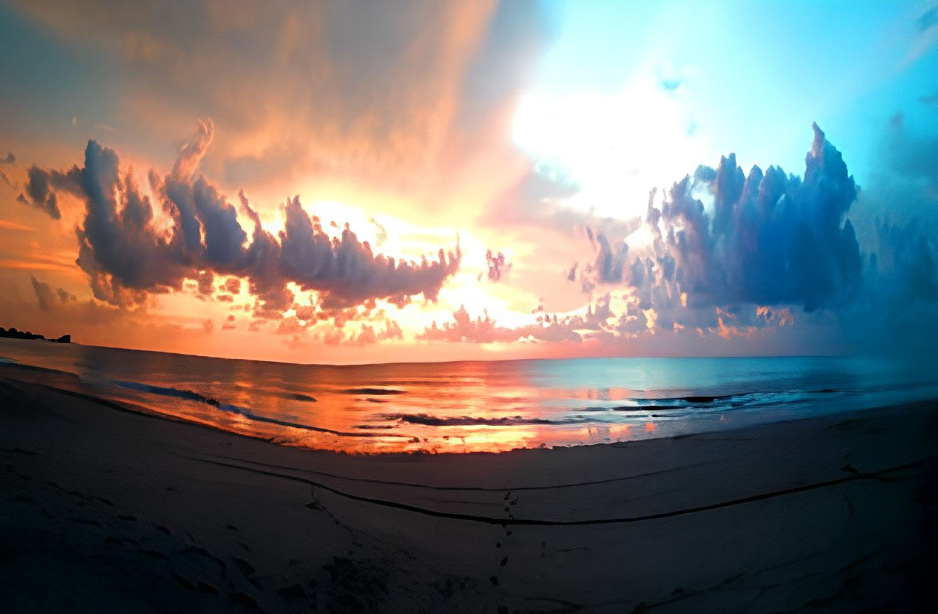 He also loves to photograph stunning coastal sunsets with a red sky painted with clouds that resemble temples. He says that everyone in his Thai neighborhood comes together on the beach for sunset each evening.