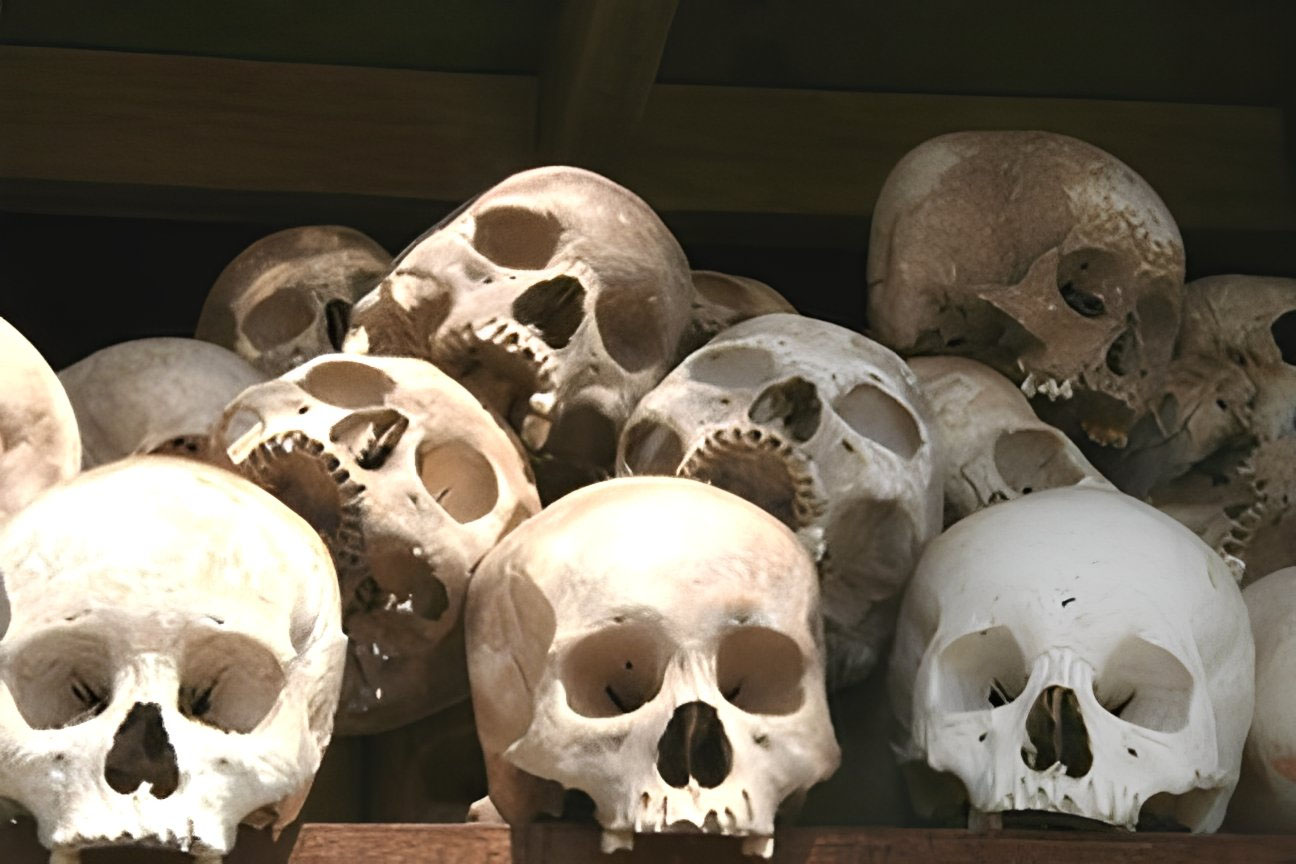 Another photograph from Thailand that is quite different from anything found in this country is a pile of skulls facing the camera. The photograph was taken in Cambodia in one of the many Killing Fields. This concerns the atrocity that occurred in the mid to late seventies where more than a million people were murdered in a state-sponsored genocide. His photography is full of stories both about how the photo was taken, but also the history behind the image.