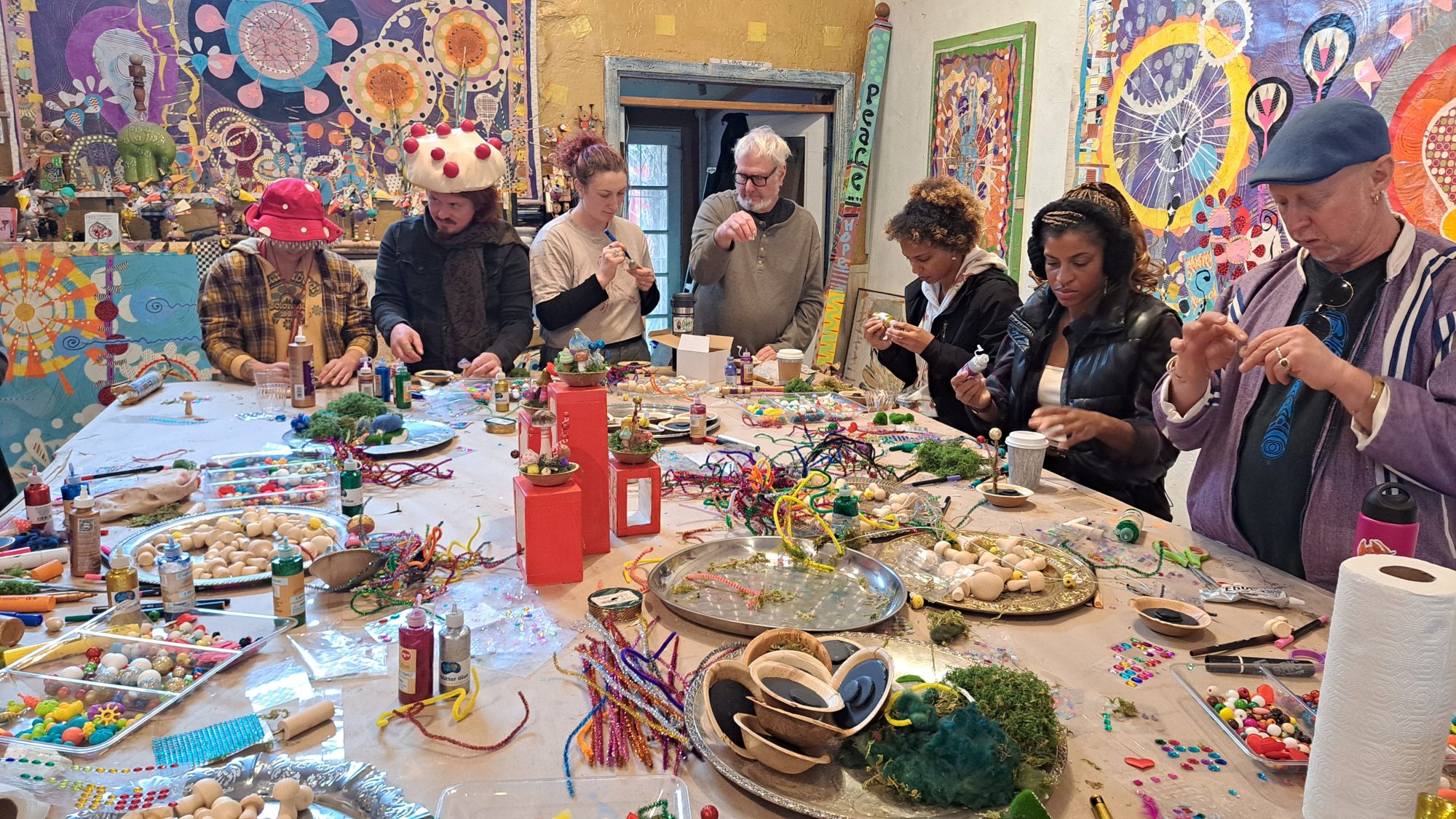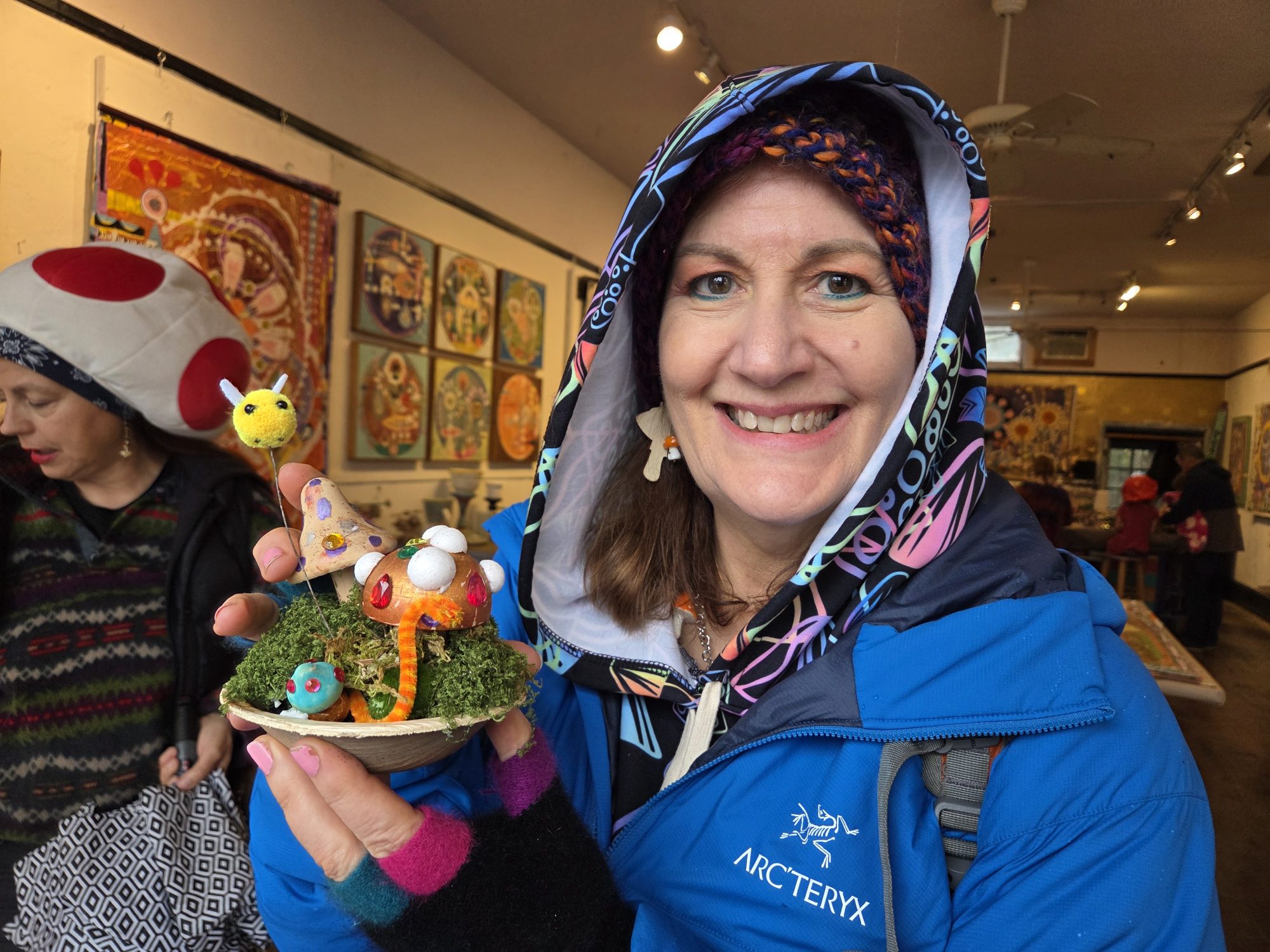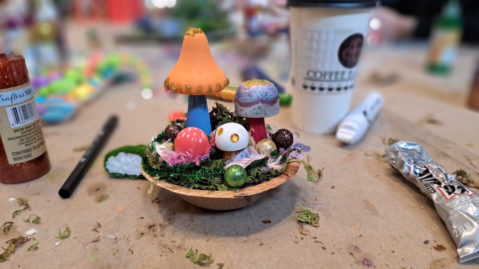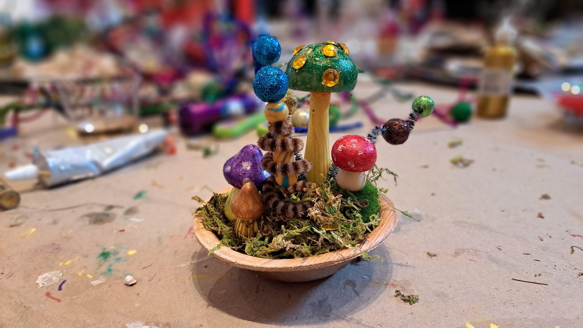 Let your imagination and creativity flow making a magical mushroom garden to take home. All ages welcome. No art experience needed. We provide all materials and expert helpers. A wonderful creative project!